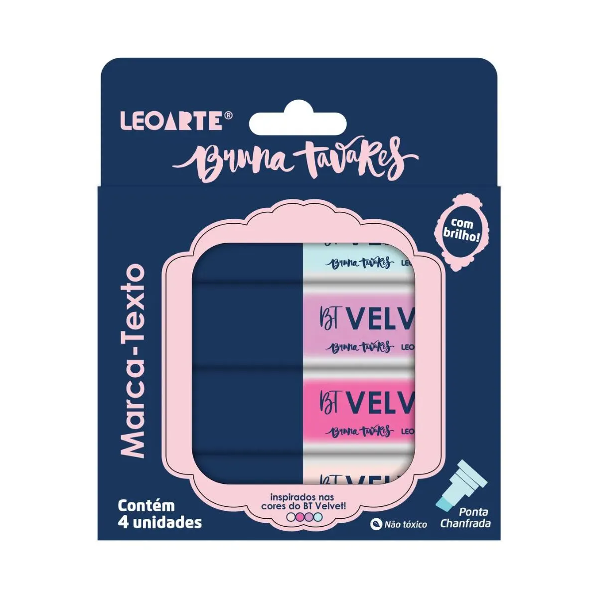 O Marca-Texto com Brilho Bruna Tavares - 4 Cores da LeoArte une sofisticação, estilo e funcionalidade, trazendo inovação para a sua rotina de estudos, trabalho ou organização. Inspirado no universo da beleza, ele tem formato diferenciado de gloss, que o torna único e cheio de charme na papelaria.